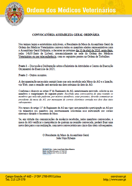 Subscreva a nossa newsletter para se manter a par das novidades acerca da Ordem dos Médicos Veterinários.