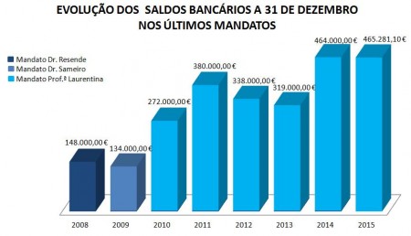 A atual Direção encerrou o ano de 2015 com um saldo bancário, a 31 de dezembro, de 465.281,10 euros.