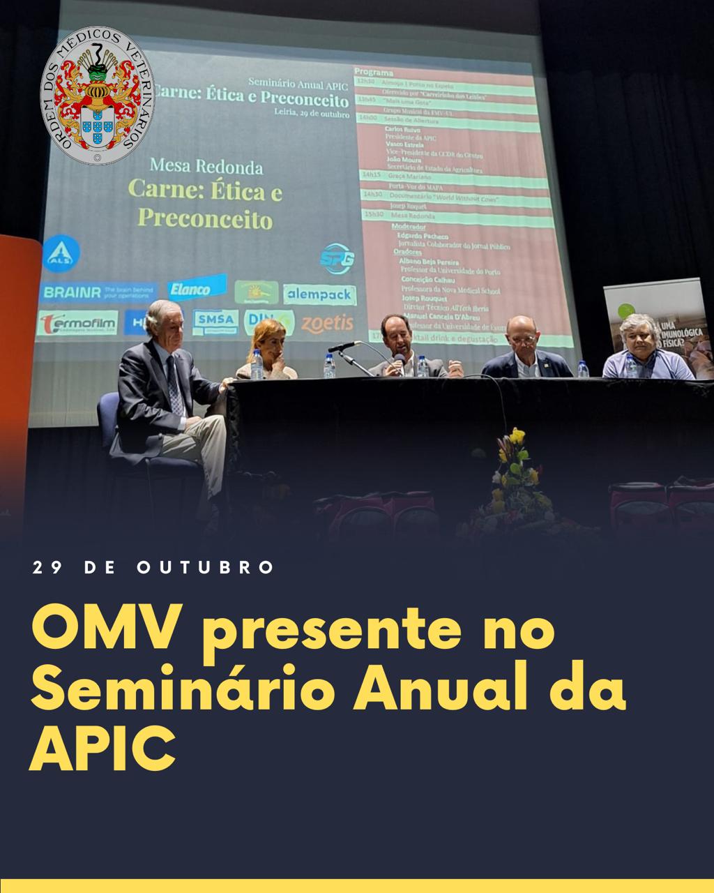 A Ordem dos Médicos Veterinários participou, no passado dia 29 de outubro, no Seminário Anual da APIC – Associação Portuguesa dos Industriais de Carnes, que teve lugar em Leiria e que este ano foi dedicado ao tema “Carne: Ética e Preconceito”.