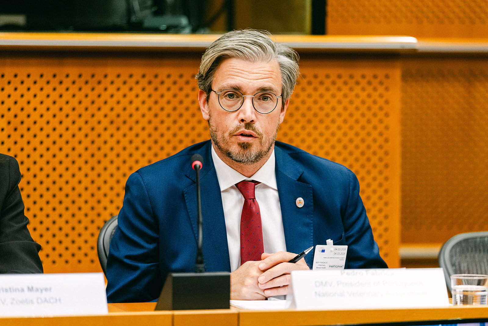 No dia 4 de março de 2026, o Bastonário Dr. Pedro Fabrica participou na sessão “Veterinary Mental Health: A Cornerstone of One Health”, a convite do Eurodeputado Emmanouil Fragkos, Vice-Presidente da SANT Committee, evento que contou com o apoio da PURINA.